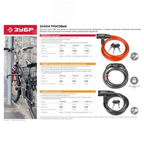 Замок ''СТАНДАРТ'', тросовый, 2 ключа в комплекте, длина троса 650мм, d 6мм