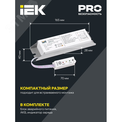Преимущества Универсальность применения: возможность модернизации светильников с ЛЛ и LED при совместном использовании БАП12-3 со светодиодной линейкой LED-18SMD2835 IEK