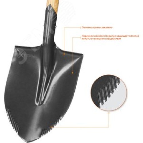 Лопата ''БЕРКУТ'' штыковая, деревянный черенок, с рукояткой, Профессионал