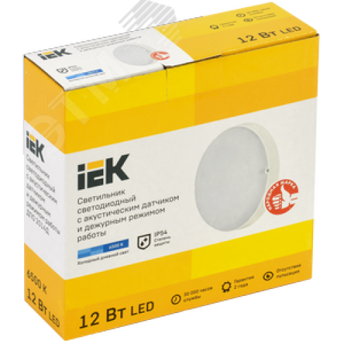 Светильник светодиодный ДПО 2014Д 12Вт IP54 6500К дежурный режим круг белый с акустическим датчиком