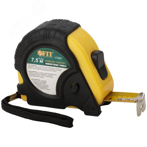 Рулетка прорезинен. корпус, тройной стопор ''Ультра'' 7.5 м x 25 мм