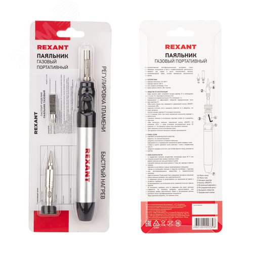 Паяльник газовый портативный 15 мл, 2 насадки