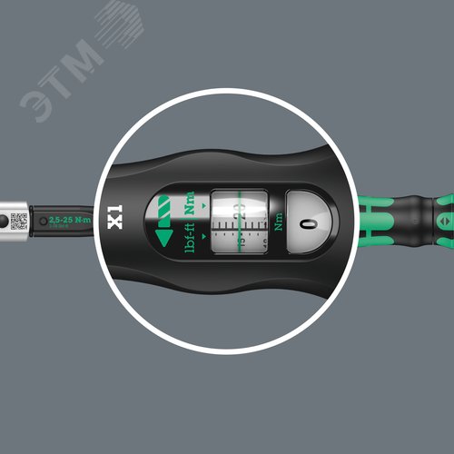 Дополнительная информация Для правой и левой затяжки Точность погрешность ±4 % от установленного значения, согласно DIN EN ISO 6789-12017-07. Исполнение с приёмным гнездом для сменных инструментов 9x12 мм, простая установка и защита установленного момента силы, слышимые и ощущаемые щелчки при достижении значения (шкала тонкой настройки значения только в Нм), слышимая и ощущаемая разблокировка при достижении установленного момента силы. Ручка эргономичная двухкомпонентная. 9x12x2.5-25