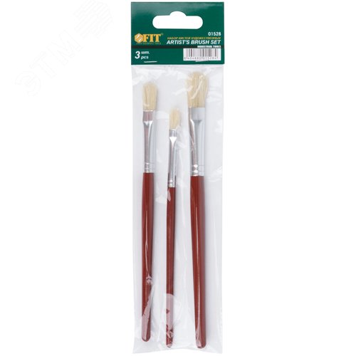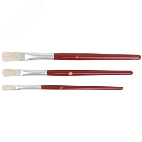 Кисти художественные, натуральная щетина, деревянная ручка, плоские, набор 3 шт