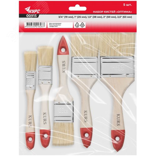 Набор кистей ''Оптима'' 5 шт (19, 25, 38, 50, 63 мм)