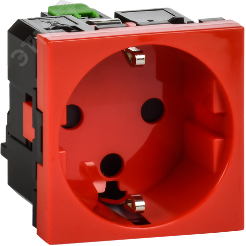 Розетка с заземляющим контактом защитной шторкой винтовым зажимом и блокировкой (2 модуля) красная