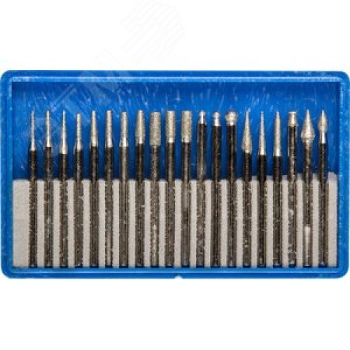 Набор : Мини-насадки с алмазным напылением в пластиковом боксе, P=180, хвостовик d=3мм, 20 предметов