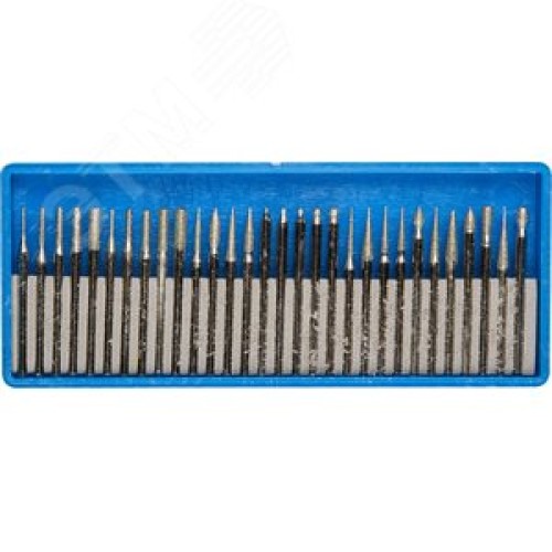 Набор : Мини-насадки с алмазным напылением в пластиковом боксе, P=180, хвостовик d=3мм, 30 предметов