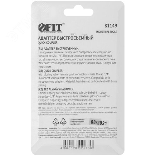 Адаптер быстросъемный универсального типа с внешней резьбой 1/4'