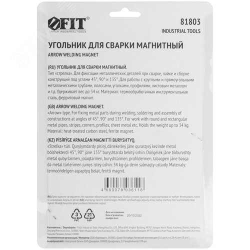 Угольник для сварки магнитный, тип ''стрелка'', усилие до 34 кг