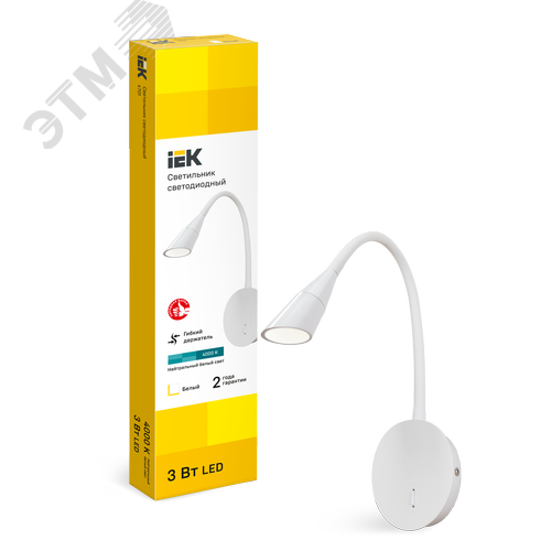 Светильник светодиодный 4701 настенный регулируемый прикроватный Светильник 3Вт 3000К IP44 белый