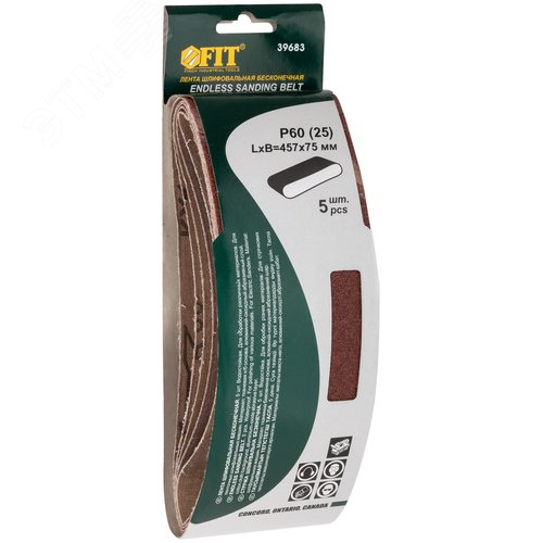Ленты шлифовальные бесконечные, водостойкие, на тканевой основе, 5 шт, 75х457 мм Р 60