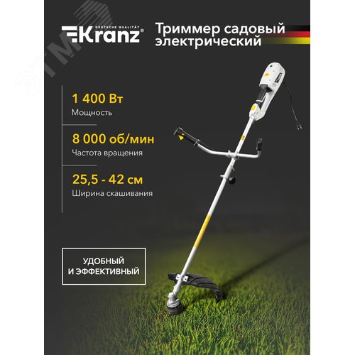 Триммер электрический KR-1400, 1400Вт, 420/255мм, катушка+диск, разборная штанга
