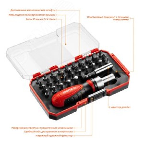 Набор Компакт-37: реверсивная отвертка с насадками 37 шт