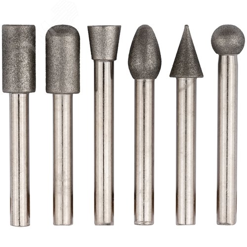 Шарошки усиленная сталь с алмазным напылением, штифт диаметр 6 мм, 6 шт