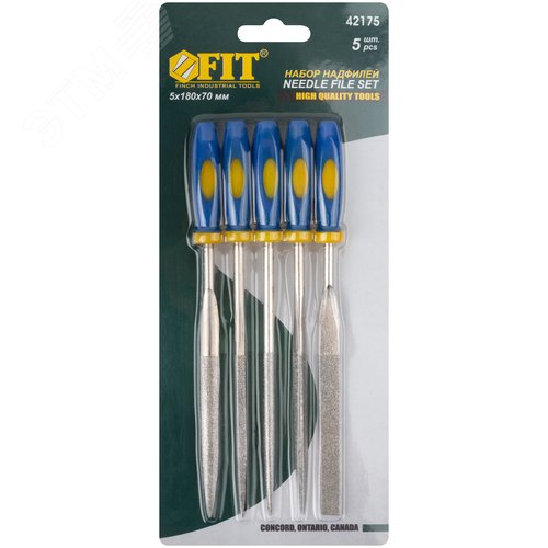 Надфили алмазные, мягкая ручка, 5х180х70 мм, набор5 шт