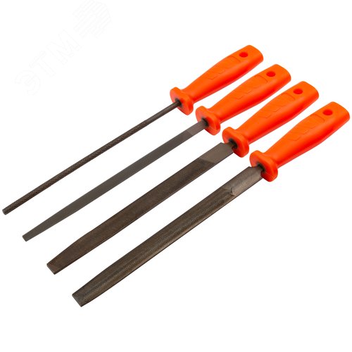 Напильники, пластиковая ручка, набор 4 шт (трехгранный, плоский, круглый, полукруглый) 200 мм
