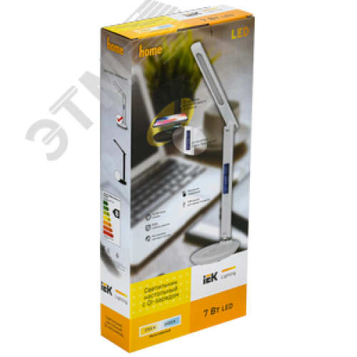 Светильник LIGHTING светодиодный настольный 2011 7Вт на подставке QI-заряд USB-выход кожа белый