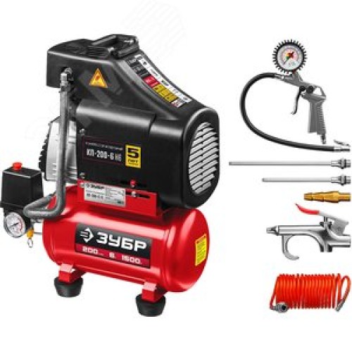 Компрессор воздушный безмасляный с набором аксессуаров, 200 л/мин, 6 л, 1500 Вт