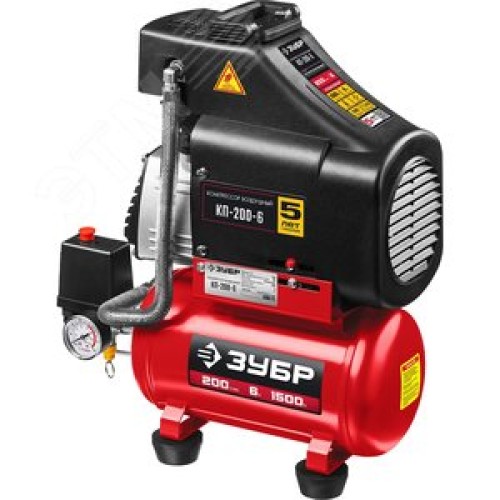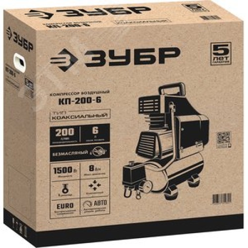 Компрессор воздушный безмасляный, 200 л/мин, 6 л, 1500 Вт