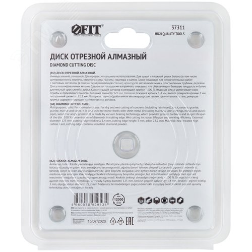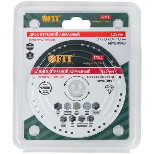 Диск отрезной алмазный ''Мультирез'' универсальный сплошной, вакуумное спекание, Профи (сухая и влажная резка) 125х1.4х3.0х22.2 мм