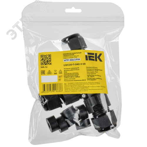 Коннектор кабельный герметичный WTP-306 3 PIN IP68