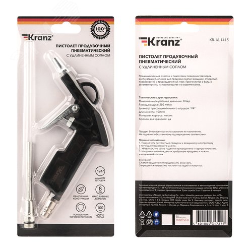 Пистолет продувочный пневматический, металлический, с удлиненным соплом (135мм)