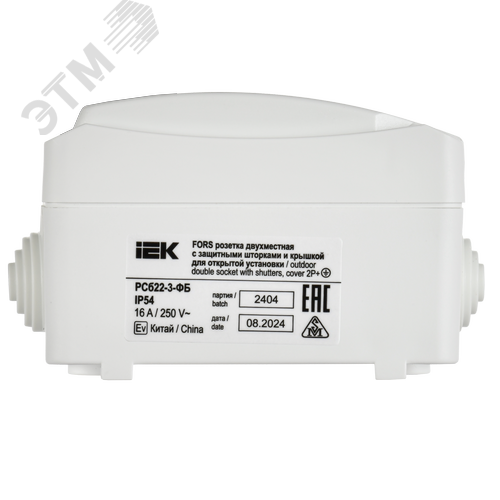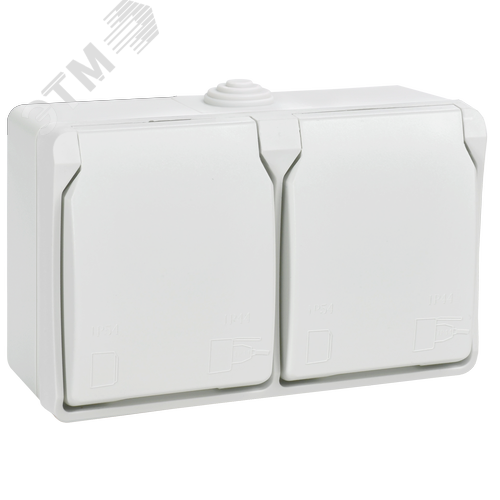 FORS Розетка 2-местная с заземлением для открытой установки 16А IP54 РСб22-3-ФБ белый ФОРС