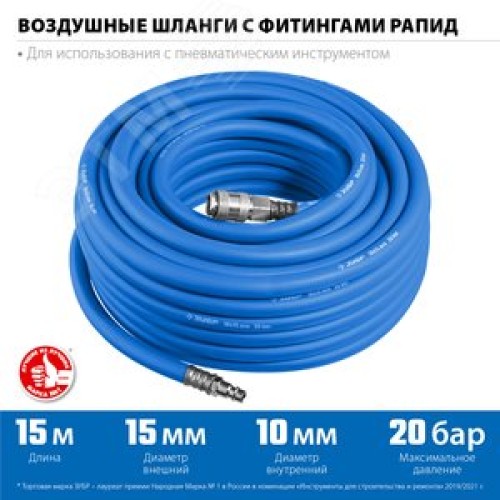 Шланг воздушный с фитингами рапид 15 м, 10х15 мм, 20 бар, Профессионал