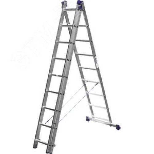 Лестница трехсекционная, алюминиевая, со стабилизатором, 9 ступеней