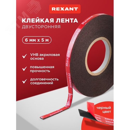 Лента клейкая двухсторонняя черная, на VHB акриловой основе, 6 мм х 5 м