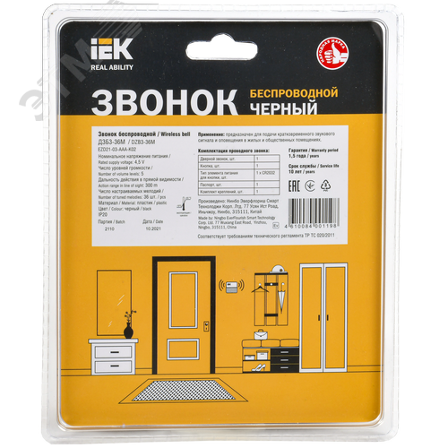 Звонок беспроводной ДЗБ3-36М (36 мелодий) черный