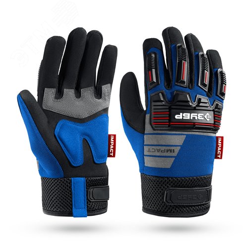 Перчатки профессиональные комбинированные, антивибрационные, противоударные, Профессионал, синие р.L 9 IMPACT
